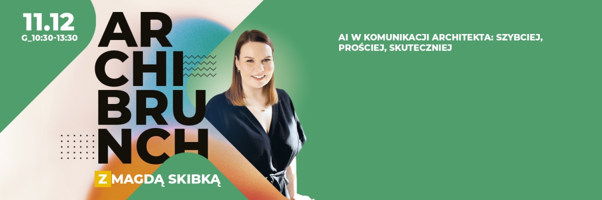 Już 11.12.2025 zapraszamy na ostatni z cyklu Archibrunch z Magdą Skibką: „AI w komunikacji architekta: szybciej, prościej, skuteczniej”