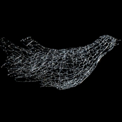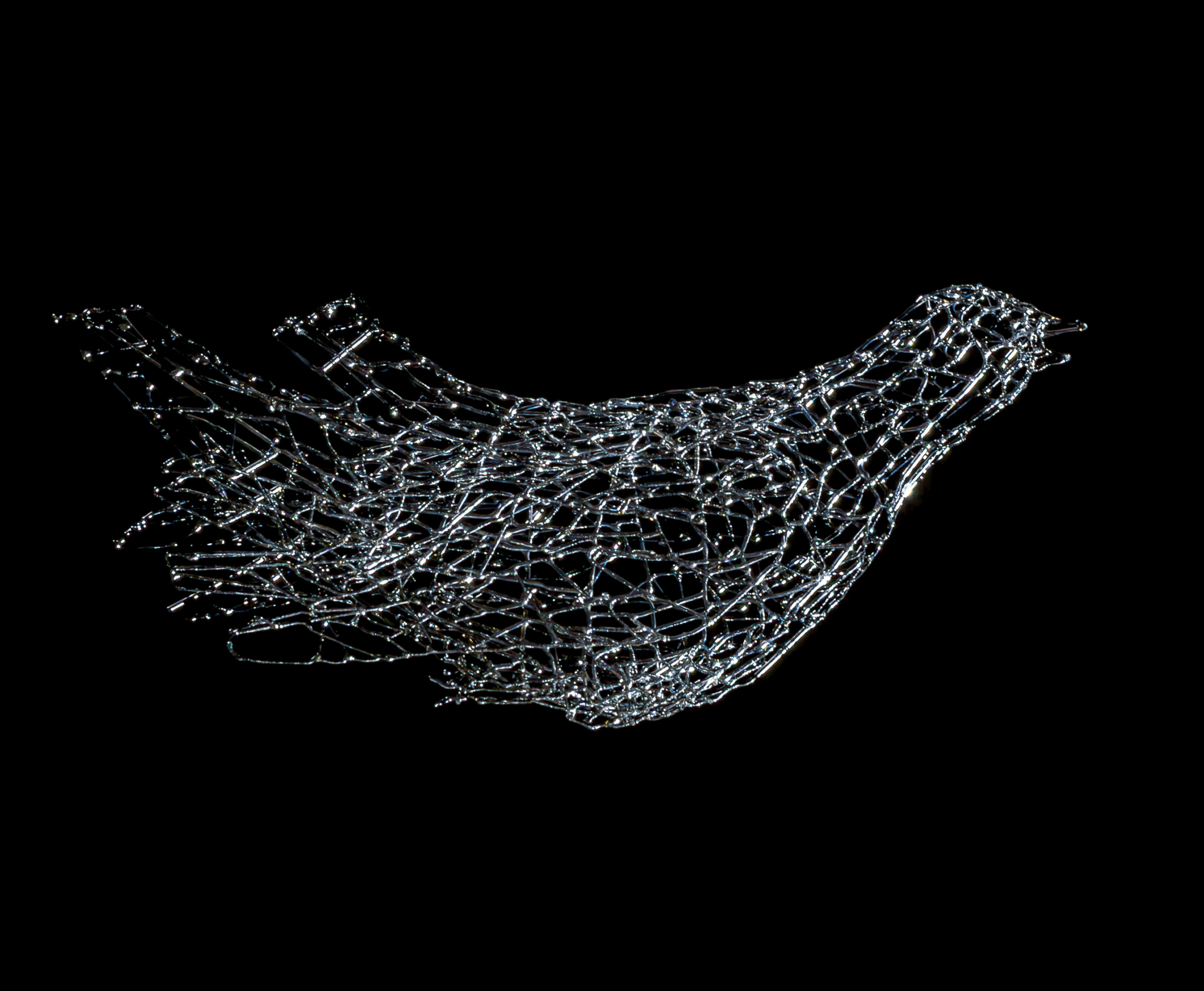Dopełnieniem malarskich kompozycji są kruche, świetliste ptaki ze szkła – znaki wolności i nadziei – oraz ceramiczne kafle, których powtarzalne moduły przywołują rytm natury. Całość układa się w symboliczny las, w którym widz może odnaleźć własny ślad i własną opowieść.
