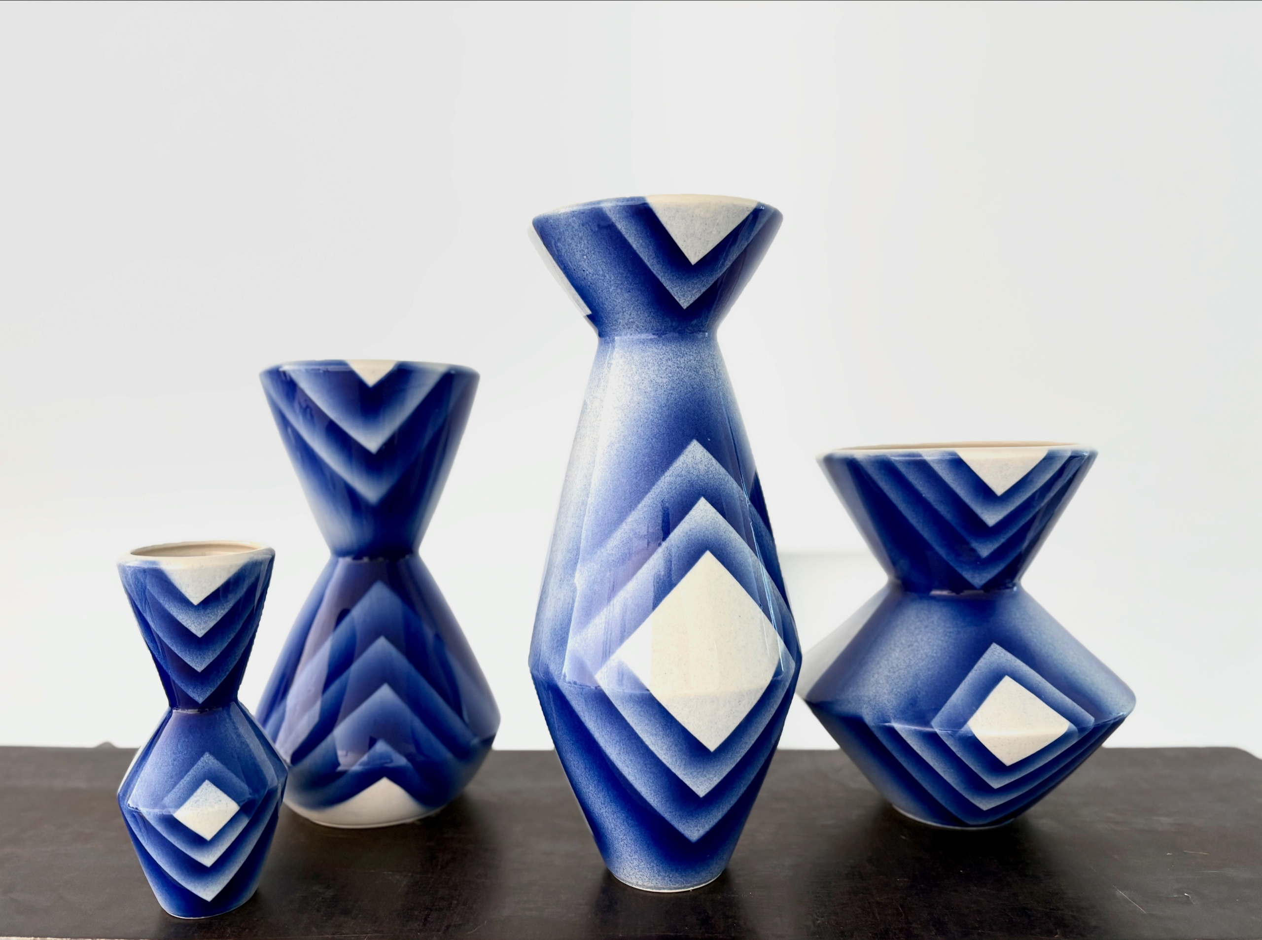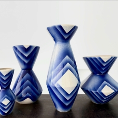 Na wystawie prezentowana jest również kolekcja BlueTime, nowy projekt Magdaleny Gazur, która stworzyła serię prostych wazonów zdobionych techniką natryskową. Ta technika często stosowana w czasach, gdy bolesławiecka ceramika była w rękach niemieckich, szczególnie popularna była między innymi w fabrykach Reinhold & Co i Julius Paul & Sohn. Tworzone wtedy eksperymentalne geometryczne wzory, zdobione natryskiem, były mostem łączącym sztukę z rzemiosłem.