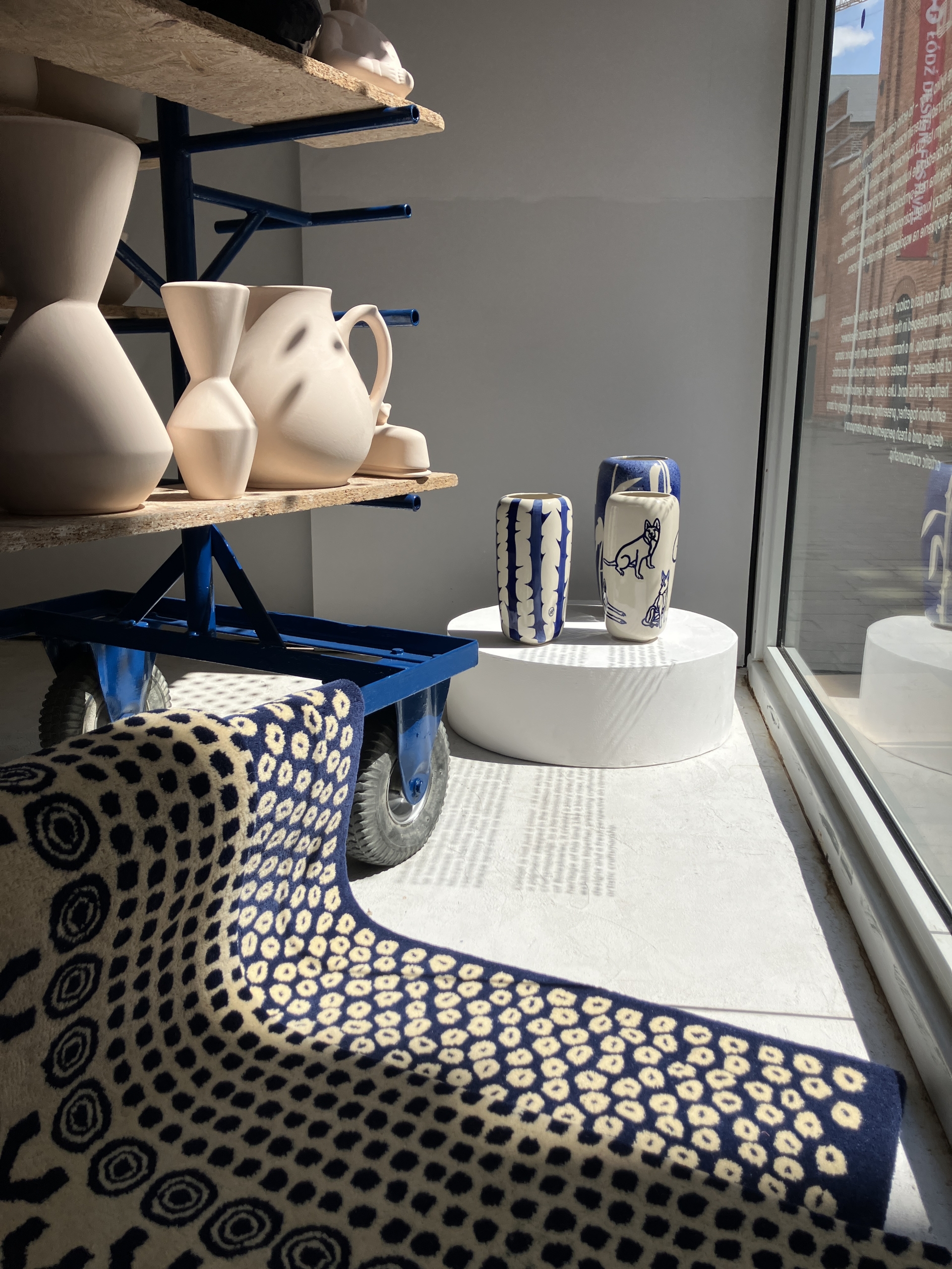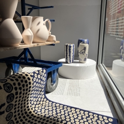 Blue World to przestrzeń, w której tradycja spotyka się z nowoczesnością, a kobaltowa ceramika od Manufaktury z Bolesławca staje się inspiracją dla nowych form wyrazu. Manufaktura, znana z ręcznie zdobionej kamionki, zaprosiła do współpracy twórców z różnych dziedzin, by wspólnie reinterpretować bolesławieckie wzornictwo. W efekcie powstały unikatowe projekty, takie jak Dywany z Bolesławca – zrealizowane we współpracy z firma Samarth, gdzie tradycyjne kobaltowe wzory przeniesiono na ręcznie tkane dywany, czy malowane ręcznie grafiki na ceramicznych formach autorstwa grupy artystycznej Pol/Sztyma/Wolna. Nad całością projektów czuwa Magdalena Gazur, główna projektantka i dyrektor artystyczna Manufaktury, która nieustannie poszukuje nowych kształtów oraz współczesnych reinterpretacji klasycznych wzorów.