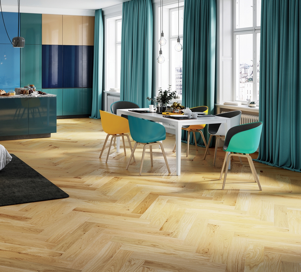 Caramel Jodła Klasyczna skomponowana jest z desek szczotkowanych z zaznaczonymi fazą krawędziami, co potęguje wrażenie szlachetnej, tradycyjnej podłogi dębowej. Jako wykończenie zastosowano lakier matowy.