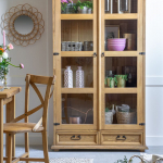 Dwudrzwiowa woskowana witryna KW704 zaprojektowana w stylu rustykalnym, wykonana w całości z litego drewna sosnowego. Za przeszklonymi drzwiczkami znajdują się trzy półki, które znakomicie sprawdzą się do przechowywania zestawów obiadowych, ozdób, pamiątek lub książek. W dolnej części witryny umieszczone zostały dwie szuflady na drewnianych prowadnicach. Mebel posiada trwałą i solidną konstrukcję. Do produkcji zostały wykorzystane ręcznie wykonywane metalowe uchwyty i zawiasy z efektem postarzenia. Witryna KW704 nada każdemu wnętrzu niepowtarzalny klimat, pełen ciepła i rodzinnej atmosfery. Dzięki jej funkcjonalności przechowywanie stanie się o wiele prostsze.