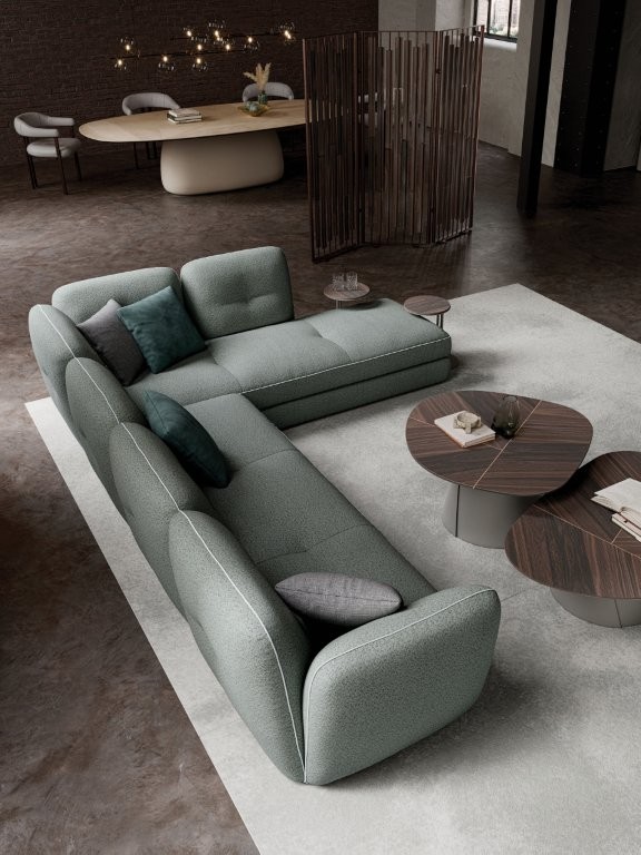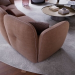 Sofa Michael marki Cattelan Italia zachwyca otulającym siedziskiem o półkolistym kształcie, który tworzy elegancki układ amfiteatru idealny do wspólnego spędzania czasu. Jej nowoczesna bryła została wzbogacona o wykwintne detale krawieckie, takie jak miękkie przeszycia na oparciu oraz wyrafinowane lamówki grosgrain, podkreślające luksusowy charakter mebla. Dzięki modułowej elastyczności oraz przemyślanej głębokości siedziska, sofa doskonale wpisuje się zarówno w przestronne salony, jak i bardziej kompaktowe wnętrza mieszkalne czy kontraktowe.