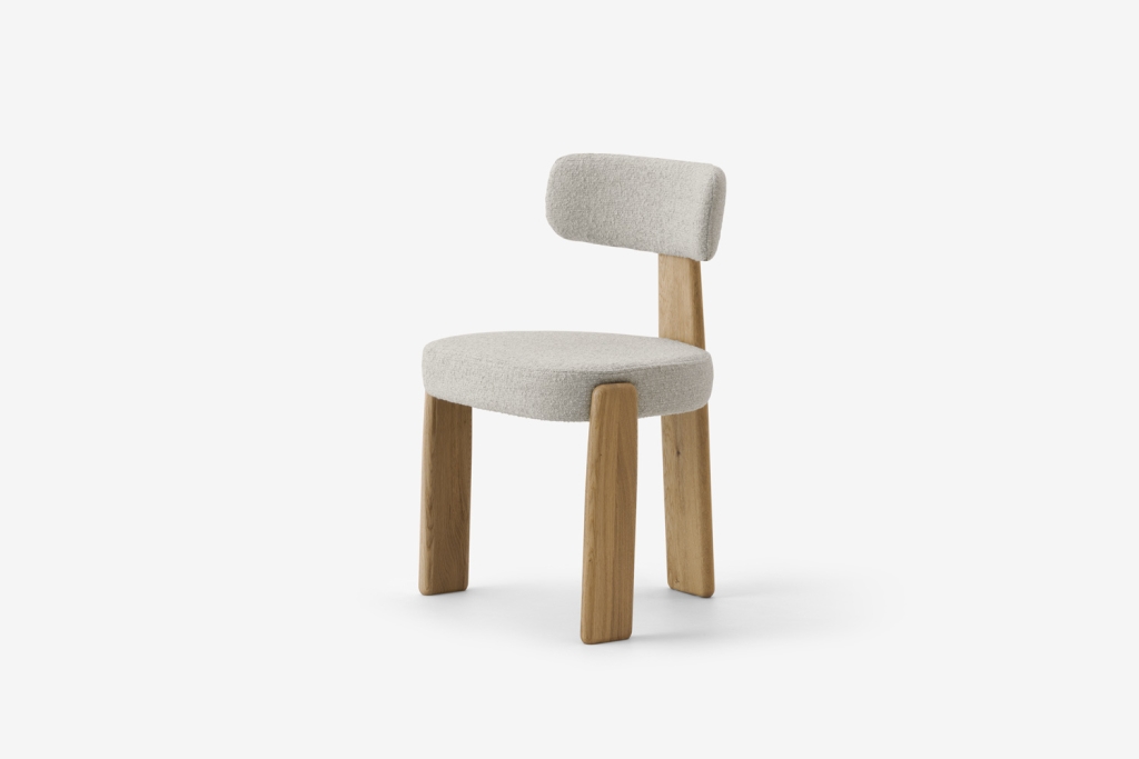 Krzesło IGY wyróżnia się niebanalną konstrukcją – dwie nogi z przodu i jedna z tyłu tworzą elegancką, a zarazem intrygującą formę. Wykonane z naturalnego drewna, zachwyca prostotą i ciepłem materiału.