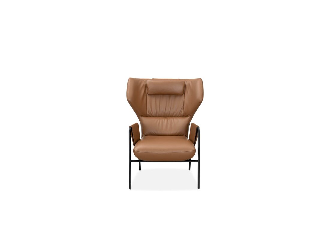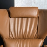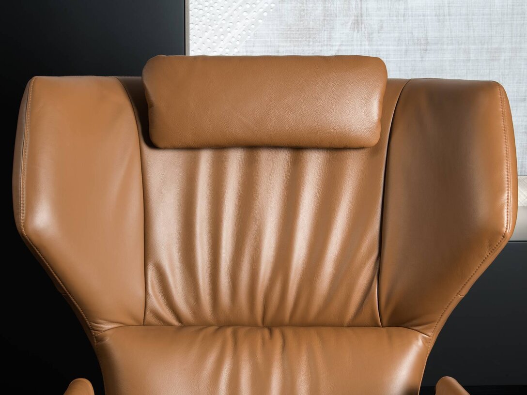 Bardzo ciekawym rozwiązaniem zastosowanym w tym meblu jest mobilny zagłówek, który w zależności od życzenia użytkownika może znajdować się na fotelu lub nie. Celem osiągnięcia zamierzonej wygody, w siedzisku i oparciu zastosowano odpowiednie pianki, włókniny puszyste oraz pasy elastyczne.