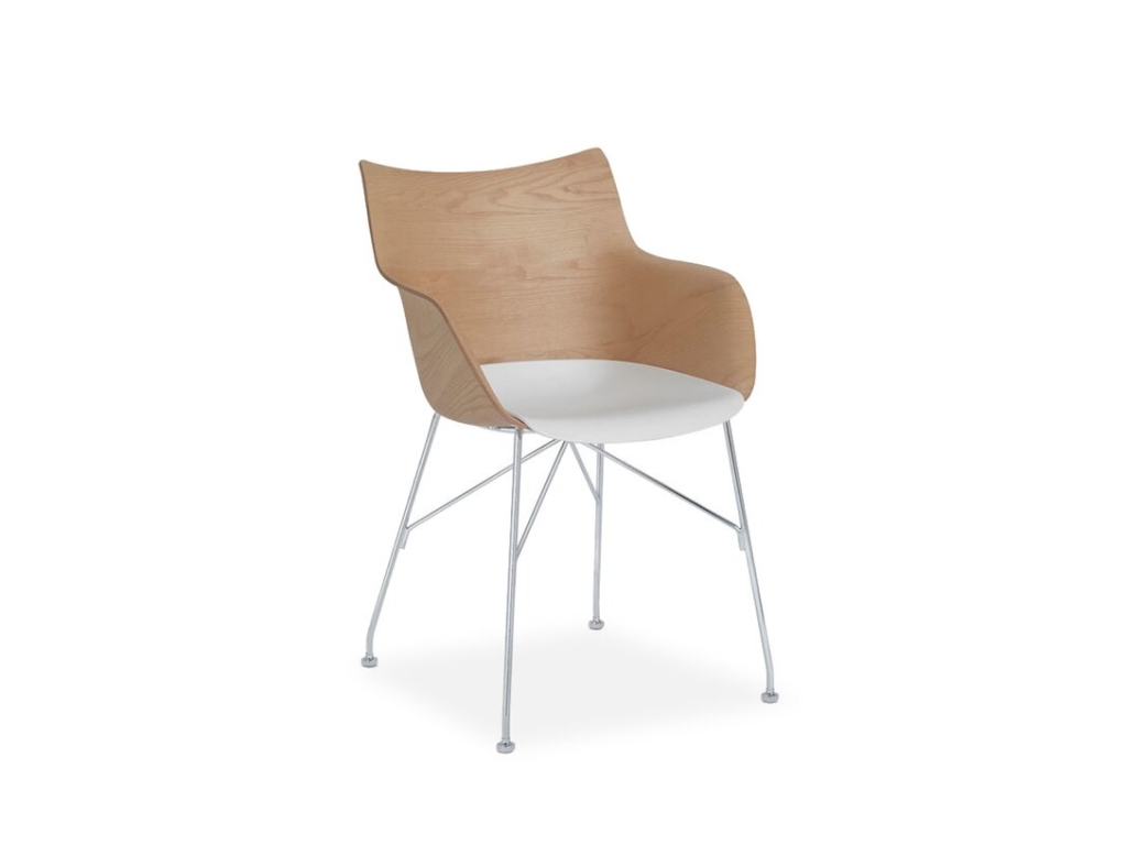Krzesło Q/Wood to piękne, drewniane krzesło projektu Philippe Starcka. Korpus krzesła wykonany jest zakrzywionej formy z drewna jesionowego, siedzisko w kolorze białym wykonane jest z termoplastycznego technopolimeru barwionego w masie, nogi natomiast wykonane są ze stali chromowanej. Krzesło w kolorze jasnobrązowym. Idealne do nowoczesnych wnętrz. Zdjęcia mają charakter poglądowy – różnica między kolorem produktów na zdjęciach, a odcieniem produktów gotowych może wynikać z ustawień ekranu komputera czy monitora urządzeń mobilnych.