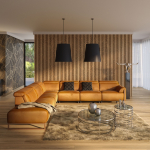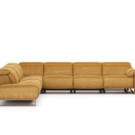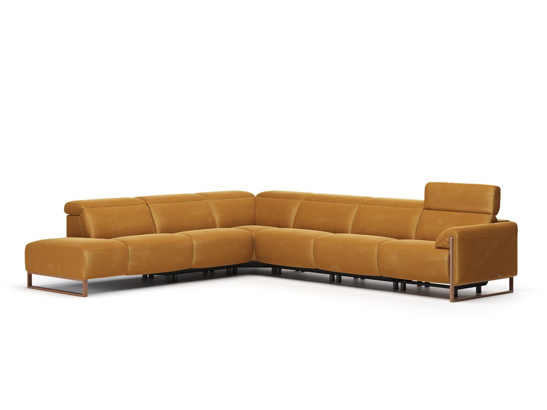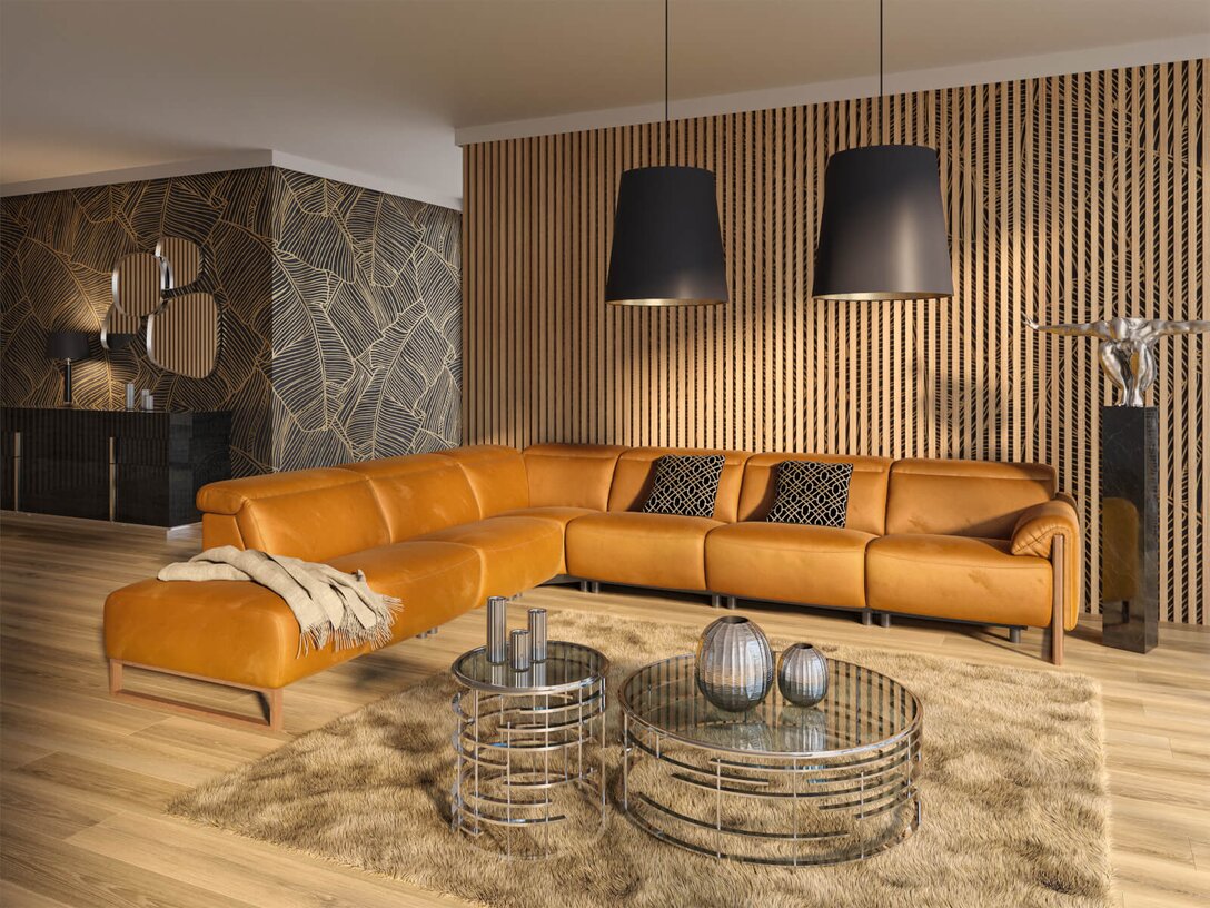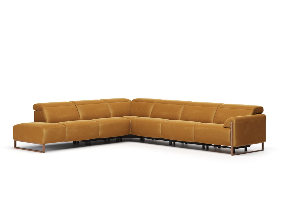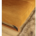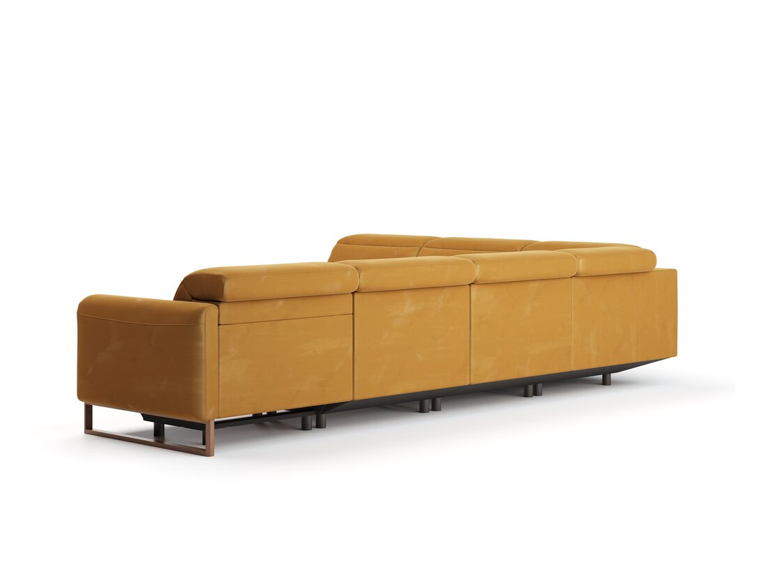 Narożnik wypoczynkowy KLER Opera składa się ze zróżnicowanych brył, co pozwala dostosować go do indywidualnych potrzeb. Narożnik z jednej strony zakończony jest podłokietnikiem, a drugi bok wieńczy element otwarty, stanowiący dodatkowe miejsce siedzące. Jest dostępny w układzie prawo- lub lewostronnym. Całość wykonano w tkaninie z kolekcji Daytona w kolorze karmelowym lub w naturalnej skórze w kolorze brązowym. Narożnik posiada widoczne nogi w kształcie płóz wykonane z orzecha amerykańskiego w kolorze naturalnym.