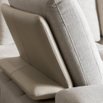 W narożniku zastosowano manualną regulację głębokości siedziska za pomocą ruchomych oparć (przód-tył), a pod podłokietnikami znajdują się funkcjonalne półki. Mebel wypoczynkowy KLER Tritono został zaprojektowany tak, by oferować najwyższy możliwy poziom wygody. W siedziskach, oparciach i podłokietnikach znalazło się wypełnienie z włóknin puszystych, właściwych pianek oraz sprężyny.