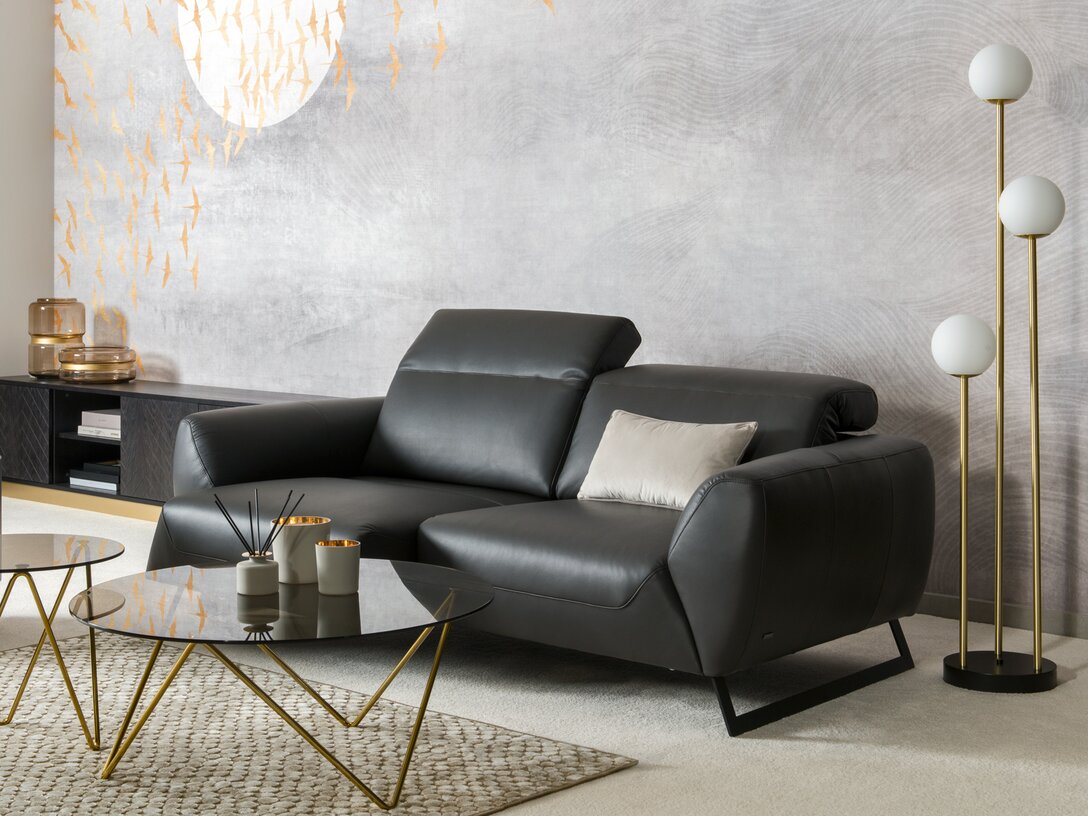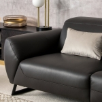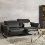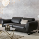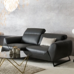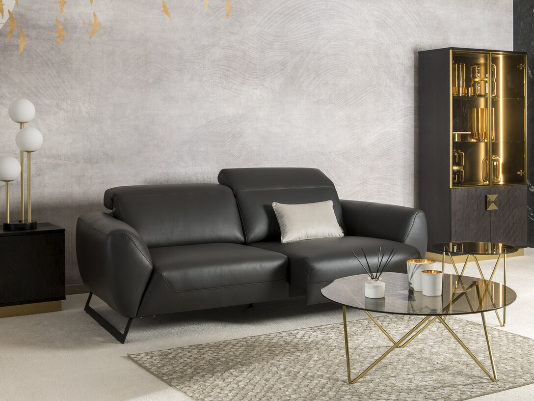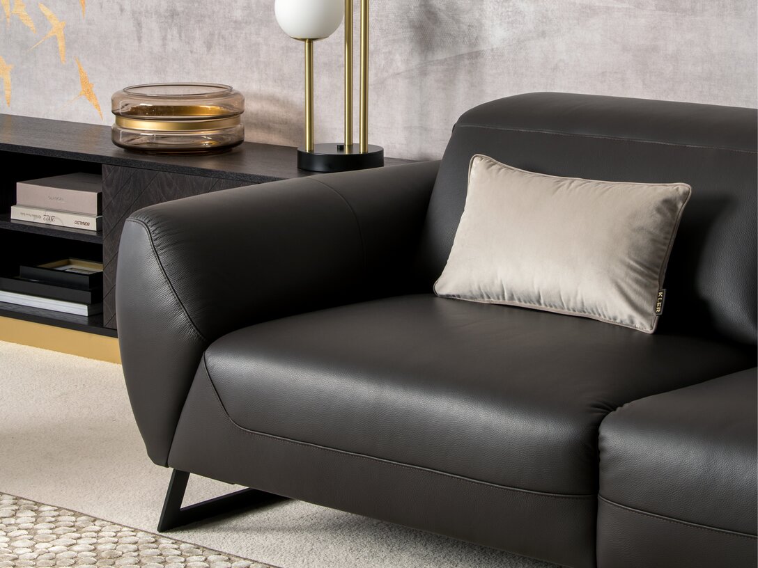 Wygoda wespół z elegancją – to kanapa trzyosobowa KLER Frase. Kanapa trzyosobowa KLER Frase to mebel salonowy służący wypoczynkowi i zapewnieniu dobrego samopoczucia. Kanapę wykonano w brązowej skórzanej tapicerce, a metalowe płozy wykonano w kolorze czarnym. Aby osiągnąć oczekiwany efekt wygody, standardowym wyposażeniem są ręcznie regulowane zagłówki, a w siedziskach, oparciu i podłokietnikach zastosowano właściwe pianki, włókniny puszyste oraz sprężyny i pasy elastyczne. Kanapa jest dostępna w wersji z niezależnie wysuwanymi elektrycznie siedziskami, gdzie mechanizm zasilany jest prądem z sieci lub za pomocą akumulatorów.