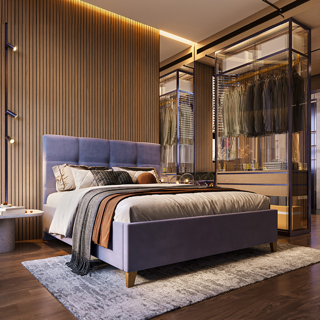 Łóżko Esja marki New Concept to propozycja, która idealnie wpisuje się w potrzeby współczesnych użytkowników poszukujących połączenia funkcjonalności i estetyki. Wykonane z najwyższej jakości materiałów, oferuje komfort i solidność, które zapewnią długie lata satysfakcjonującego użytkowania. Tapicerowane oparcie o delikatnych, prostych liniach sprawia, że łóżko doskonale komponuje się zarówno w nowoczesnych, minimalistycznych aranżacjach, jak i w bardziej klasycznych wnętrzach. Wybór tkaniny obiciowej daje możliwość pełnej personalizacji – od subtelnych, stonowanych odcieni, po bardziej wyraziste kolory. Grubość ramy zapewnia stabilność konstrukcji, a także podkreśla solidność wykonania, co jest istotnym atutem tego modelu. Nóżki łóżka dostępne są w kilku wariantach. Stanowią nie tylko stabilne oparcie, ale i elegancki detal. Model może być wyposażony w pojemnik na pościel, co zwiększa jego funkcjonalność, czyniąc go praktycznym rozwiązaniem dla osób ceniących sobie porządek i wygodę.