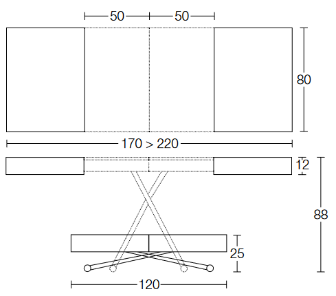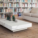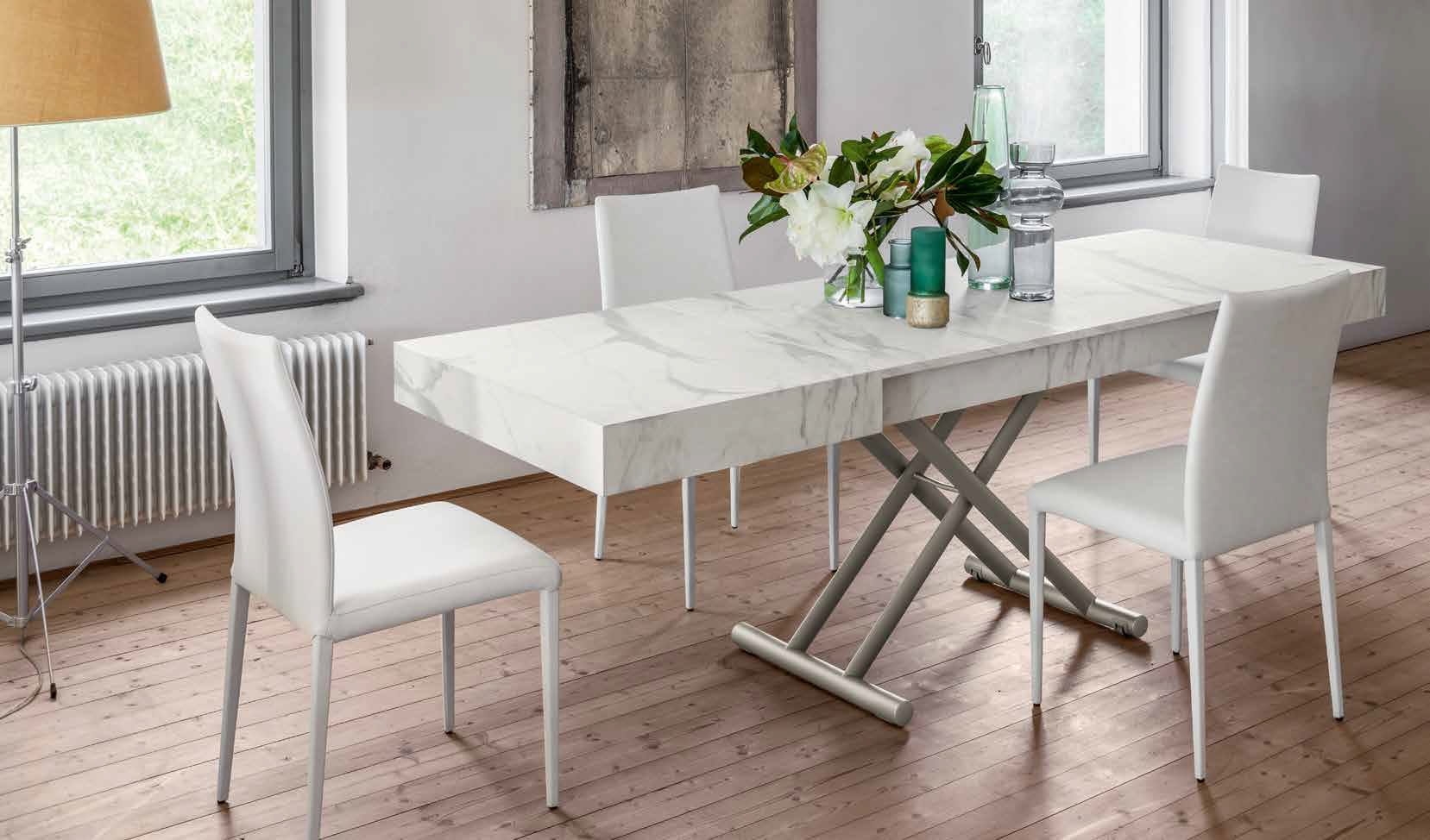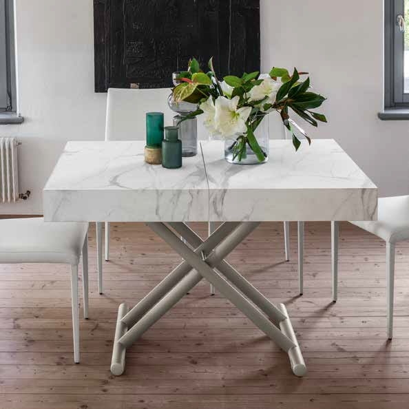 Stół wielofunkcyjny Ulisse to elegancki i praktyczny mebel, który można z łatwością przekształcić w stół jadalniany, idealny do nowoczesnych wnętrz i mniejszych przestrzeni. Wyposażony w gazowy mechanizm regulacji wysokości, pozwala na precyzyjne dostosowanie blatu od 28 cm do 88 cm, co umożliwia jego użytkowanie na różnych wysokościach.