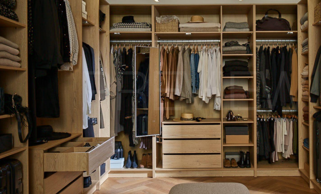 - Pakiet Maxi oferuje najbogatszą wersję wyposażenia. Jest dostępny wyłącznie dla szaf o wysokości 240 cm. Lewy segment wyposażono w półkę stałą, drążek oraz wysuwany wieszak na spodnie; środkowy segment posiada opuszczany drążek i kontenerek z 3 szufladami; prawy segment zawiera wysoką półkę stałą oraz 5 półek regulowanych na wysokość.