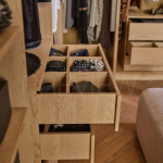 - Wnętrze szafy można dostosowywać do zmieniających się potrzeb. Dokupienie wieszaka na akcesoria zapewni dodatkową przestrzeń do przechowywania ubrań i dodatków, a organizer do kontenerka pomoże w wygodnym podziale i segregacji drobnych przedmiotów.