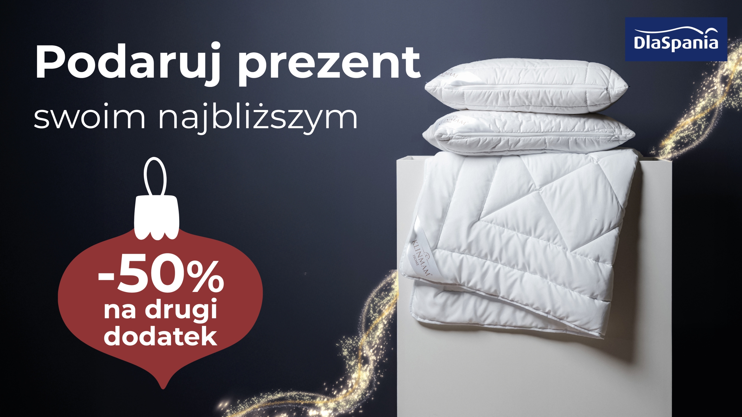 Podaruj prezent swoim najbliższym! Tylko do 23 grudnia w salonach DlaSpania obowiązuje specjalna świąteczna promocja — -50% na drugi dodatek. To idealna okazja, by wybrać piękne i praktyczne prezenty na święta. 🎄