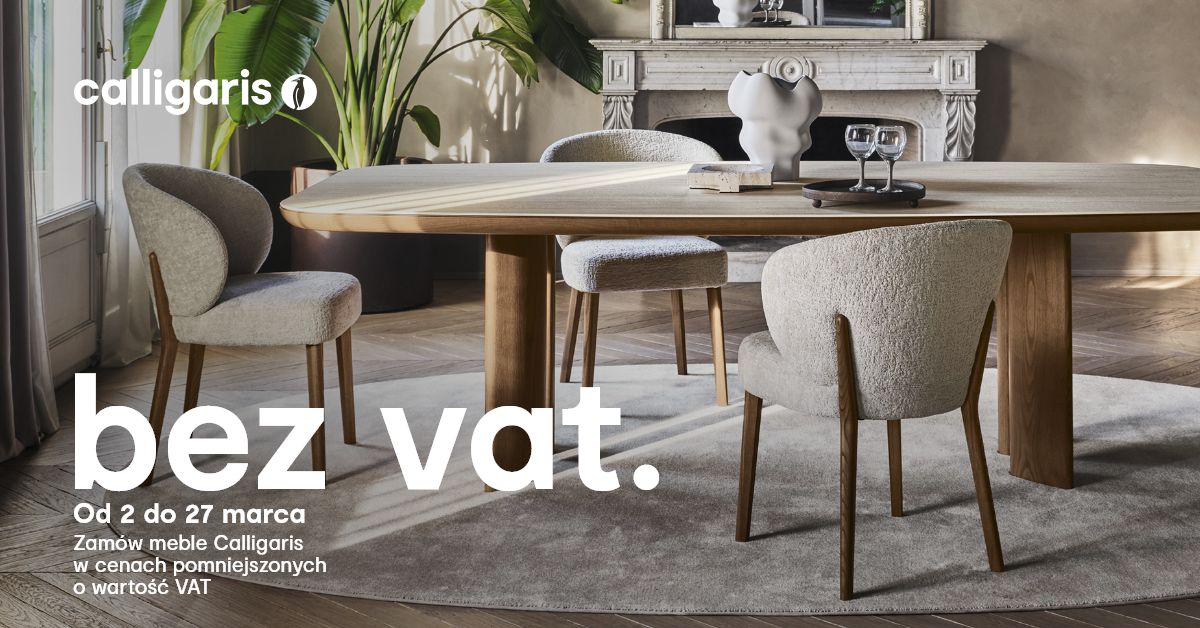 Od 2 do 27 marca 2026 trwa wyjątkowa akcja BEZ VAT na produkty marki Calligaris. To idealny moment, by wybrać włoski design, który łączy elegancję, komfort i nowoczesne wzornictwo teraz na specjalnych warunkach.