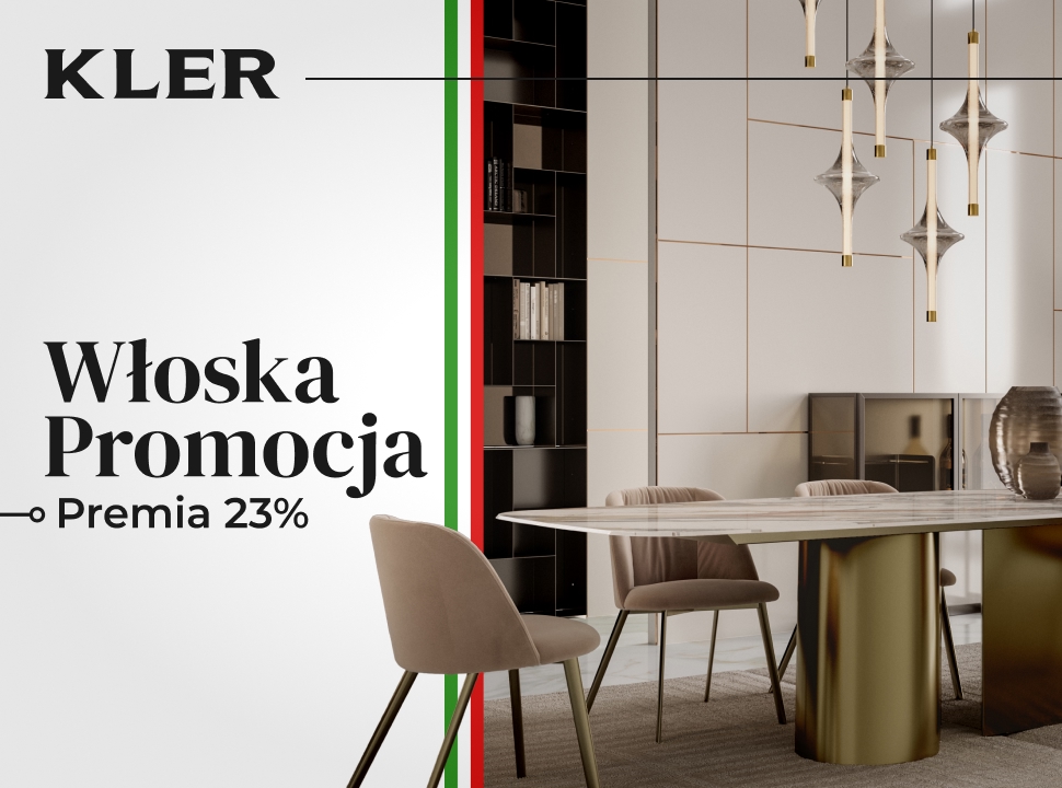 Kolekcje KLER celebrują włoską kulturę projektowania: harmonię formy, odwagę detalu i szlachetność materiałów – teraz w ramach Zimowej Wielkiej Promocji z 23% premią!